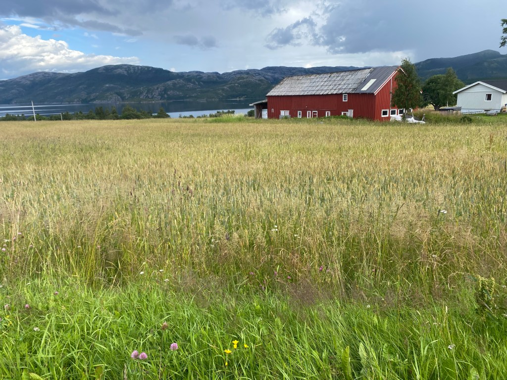 I think I went through Norway’s wheat country, but maybe someone reading the blog can help me with an identification of the grain. Looked a little different from Oklahoma wheat.