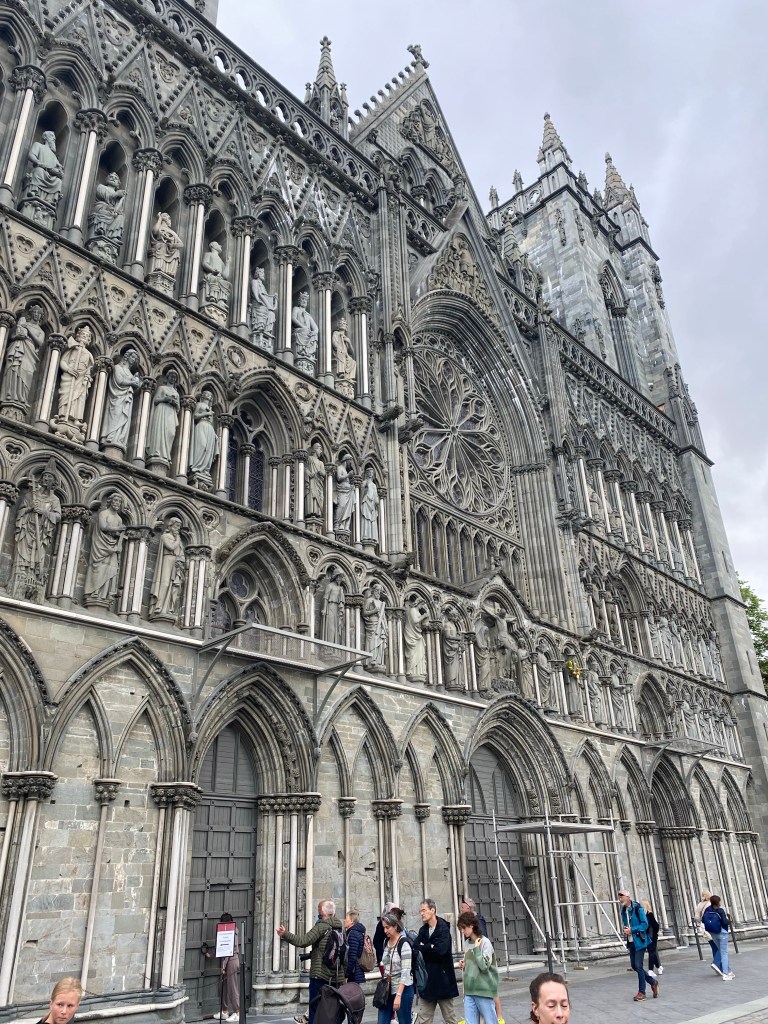 Trondheim is a wonderful historic city established as a trading post during the Viking Age (997) and put on the Christian European map when King Olav was sainted in 1031, a year after dying in battle. From that time a cathedral slowly emerged that by the 16th century was Lutheran and the capital of Norwegian Christianity. Nidaros Cathedral also happens to be the northernmost gothic cathedral and the site where some of the kings and queens of Norway were crowned.