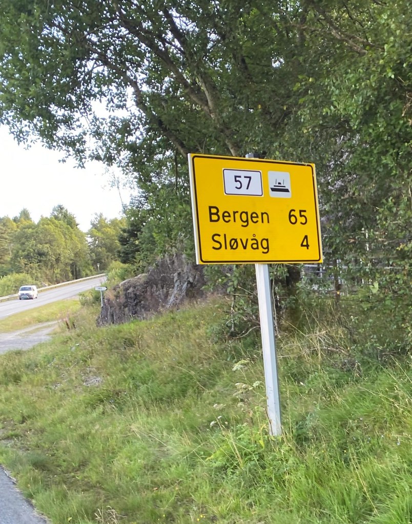 Well, this isn’t quite that, but I did get a little inspired when I saw my first sign for Bergen. And I did put in another 16 miles after my third ferry, rolling into the campsite at nearly 10 p.m. (It gets dark at 10:30)